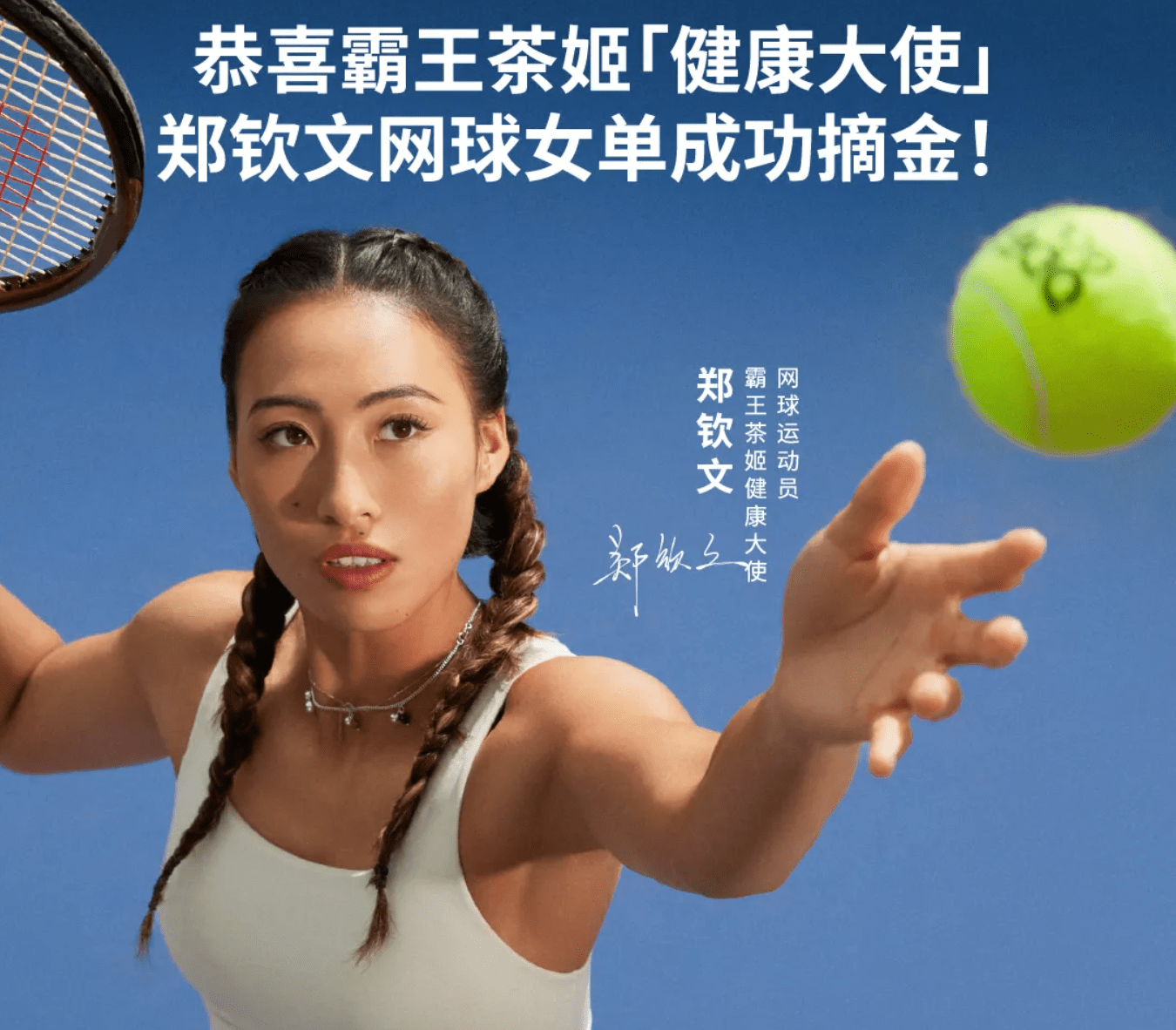 Details: The fast-expanding Chagee signed Zheng as a health ambassador in April, and an official poster featuring Zheng with a tennis racket in one hand and a Chagee teacup in the other has been seen at the brand’s offline stores across the country since.
